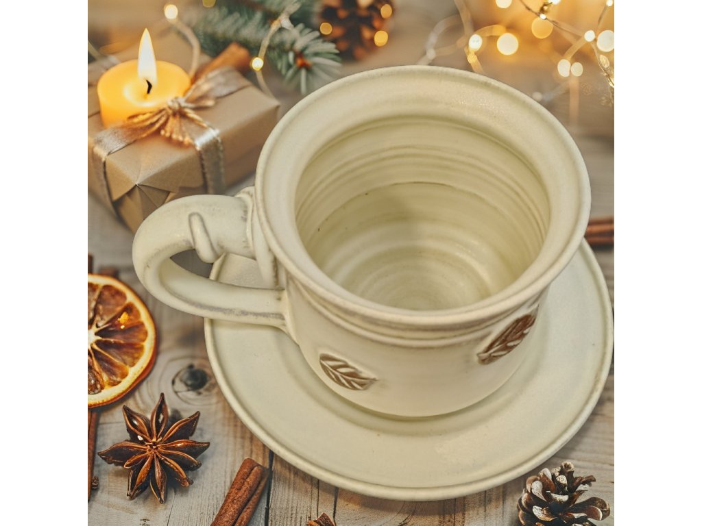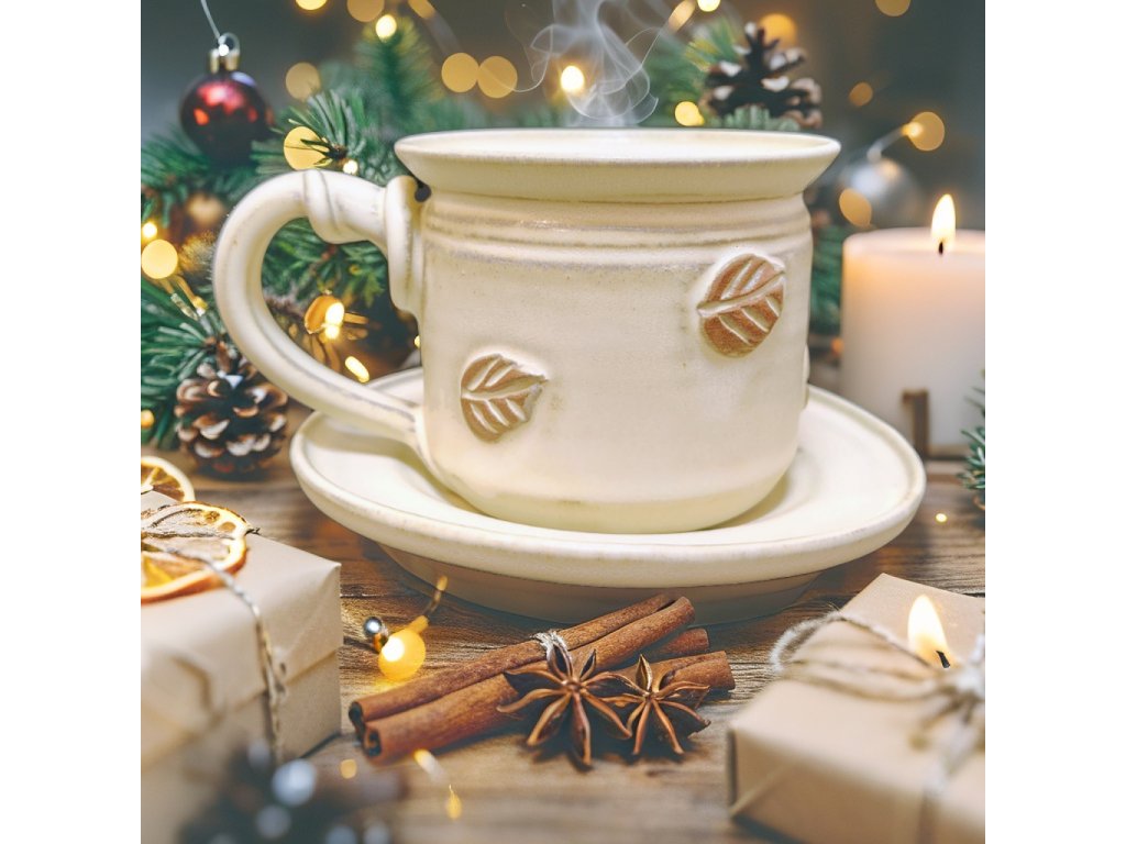 Jemné listové motivy vytlačené v hlíně dodávají hrnku přírodní eleganci a osobitost. Je to hrnek, který působí teple, útulně a stylově zároveň.