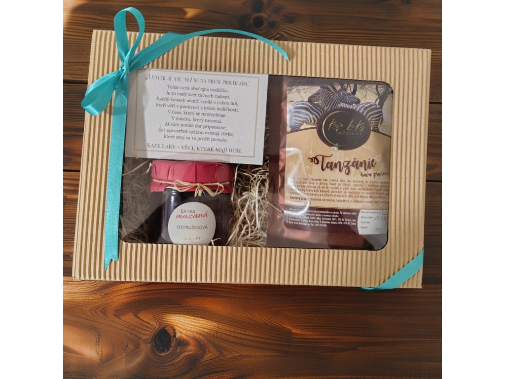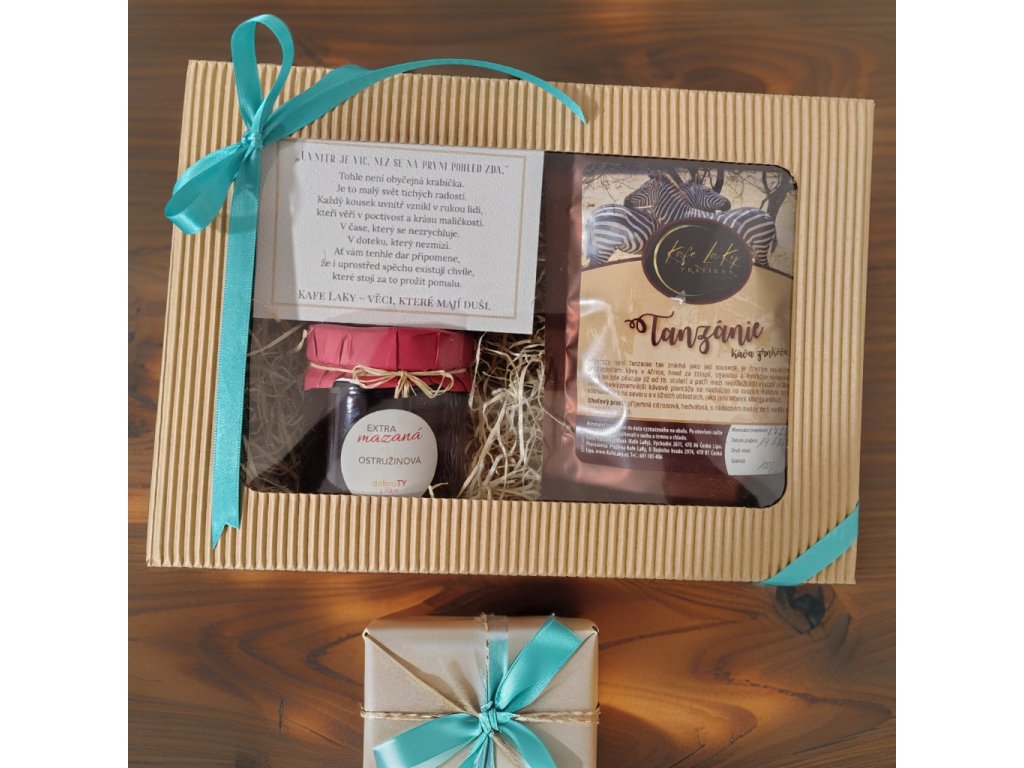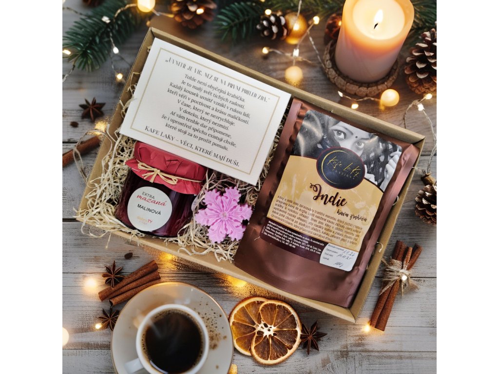 Tahle kazeta spojuje výběrovou kávu, poctivý 100% jednodruhový džem, ručně odlité svíčky… a nově také dárkovou kartičku s hlubokým příběhem, která celý zážitek povýší na úplně jinou úroveň.