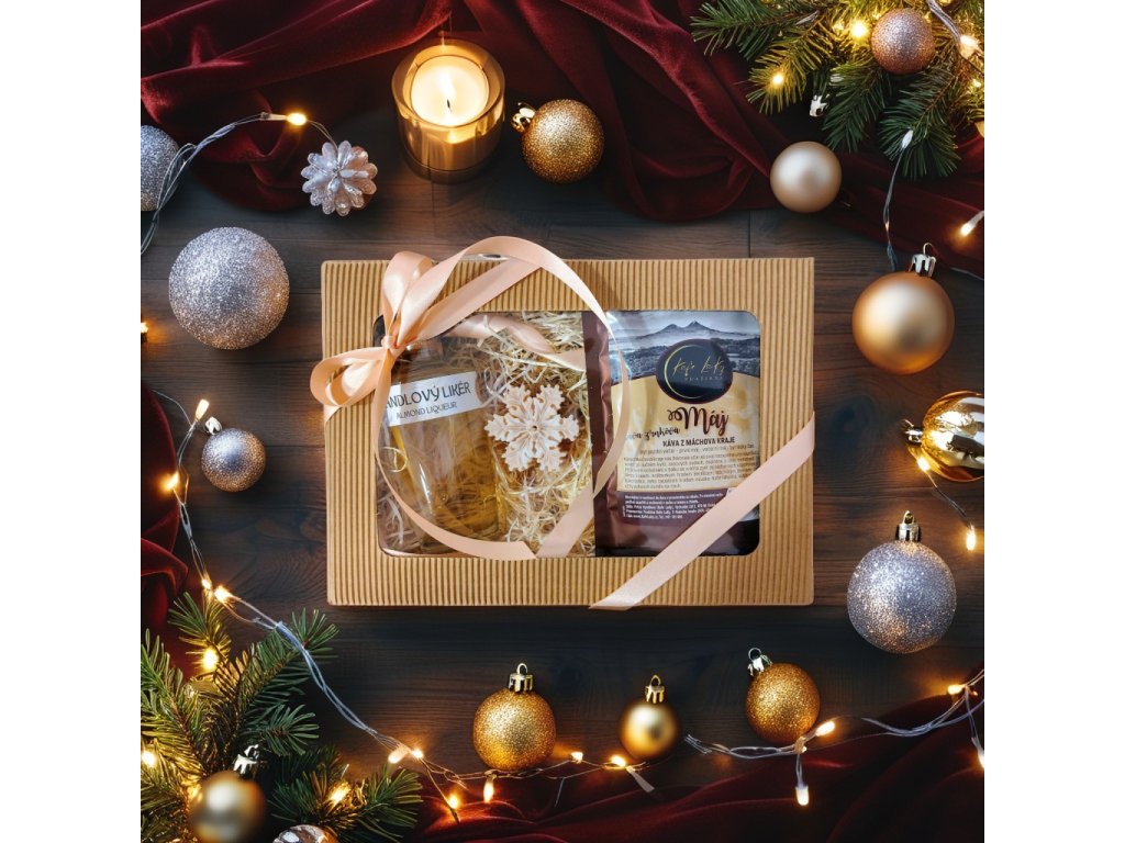 Dárková kazeta obsahuje: Výběrová káva 100g, Likér (Mandlový, či kávový dle vašeho výběru), gravírovanou ozdobu která potěší. Vše zabalené v dárkové krabičce.